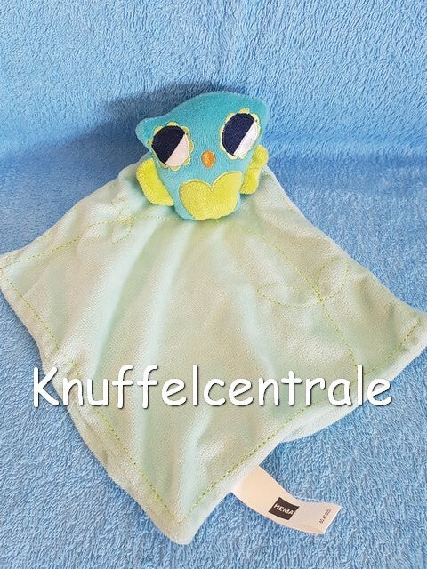 Hema uil uiltje op blauw mintgroen knuffeldoek (zonder label)