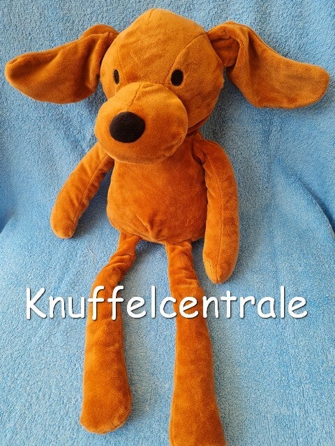 Overige info: Hond heeft oorspronkelijk een dekentje tussen de poten geklemd (vandaar het klitteband). wollige vulling