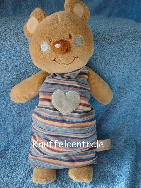 Materiaal: velours gezicht, armen en benen, rib lijfje (gestreept doekje/lijfje)
