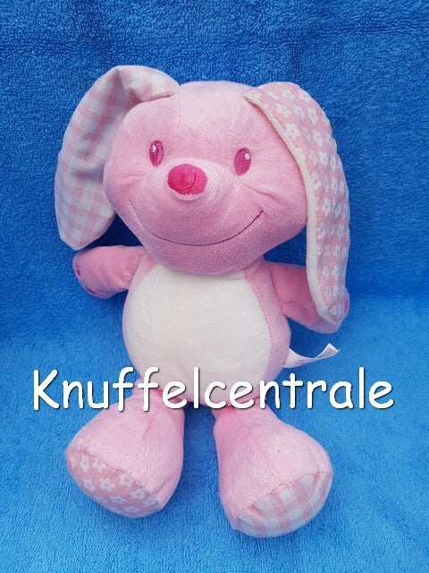 Tiamo Konijn knuffel roze met ruit en bloem oor 30 cm