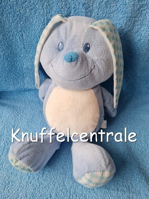 Tiamo Konijn knuffel Blauw met ruit en bloem oor 30 cm