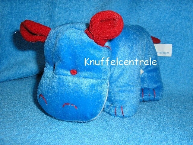 Overige info: Rammeltje in de buik. Knuffel blijft staan. Rode oren en staart. Rood geborduurde ogen , neusgaten en tenen