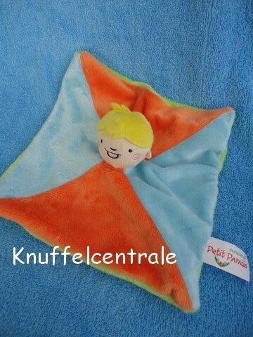 Overige info:Hoofd jongentje steekt boven het doekje uit. Onderkant doekje is groen met duimgat in het midden.