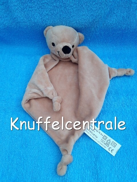 Overige info: bruin doekje met puntjes (knoopjes). hoofdje wollig gevuld. geborduurde ogen en mond.