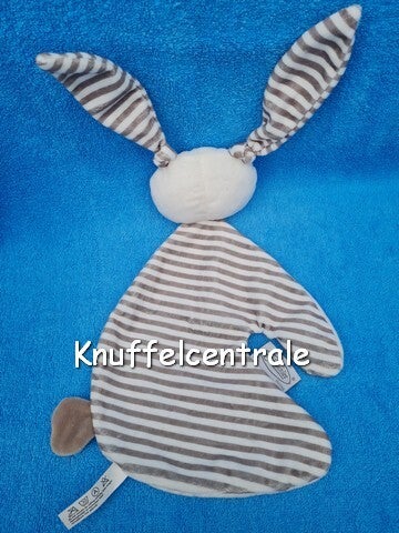 Funnies konijn wit knuffeldoek met grijs / bruine strepen