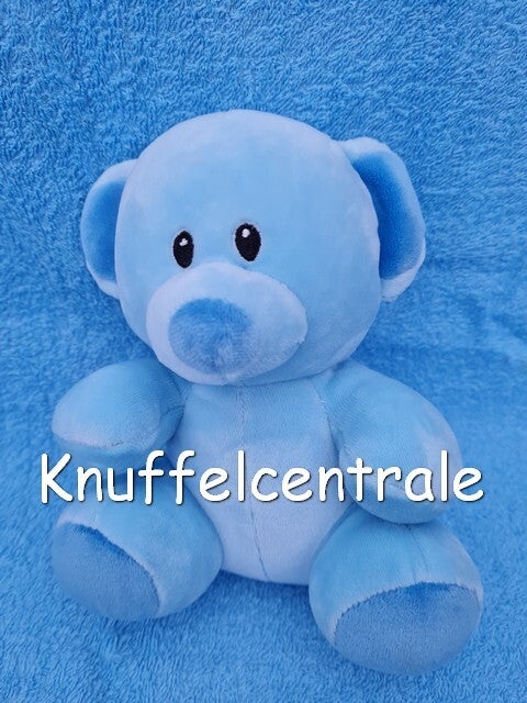 Overige info: geborduurde ogen. neus, binnnekant oren en voeten dondkerder blauw. Korrels in de billen