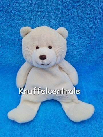 Overige info: Lijf, armen en benen en snoet + binnnekant oren is velours, rest rib katoen.Geknoopt geborduurde ogen, neus en mond ook geborduurd. Korrels in billen, handen en voeten.