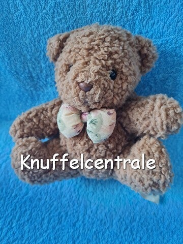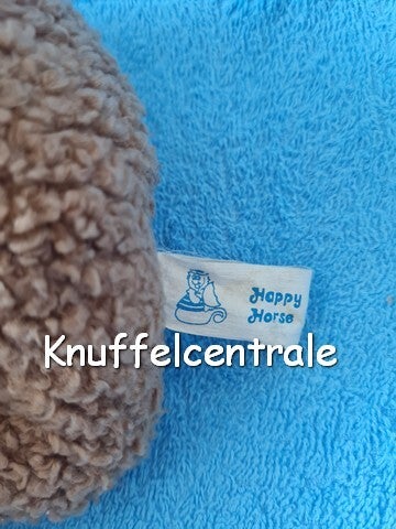 Overige info: Unieke oude Vintage Happy Horse beer uit 1992. Wollig gevulde zittende beer met de armen en benen gespreid wijd. Ronde zwarte glazen ogen en bruin plastic neusje. Bruin gebordurde mond. Gevuld strikje van een katoen creme stofje met groen roze (bloemen?) print.